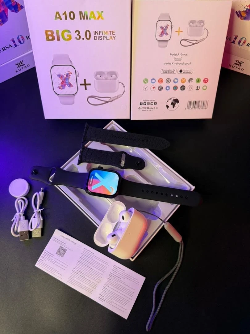 Profitez d’un pack complet 2 en 1 comprenant une montre connectée moderne et des écouteurs sans fil, idéal pour rester connecté au quotidien.