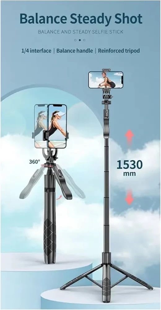La perche à selfie Bluetooth USTINE noire est un accessoire 3-en-1 léger et pratique qui combine perche à selfie, trépied de table et trépied de sol, avec une télécommande sans fil intégrée offrant une portée jusqu’à 10 m ; extensible jusqu’à 153 cm grâce à ses 5 sections télescopiques, elle permet une rotation à 360° et une inclinaison à 180° pour un cadrage parfait en mode portrait ou paysage, tout en restant ultra compacte (130 g) et facile à transporter, compatible avec la plupart des smartphones (iPhone, Samsung, Android), idéale pour selfies, vidéos, voyages, événements et photos de groupe.
