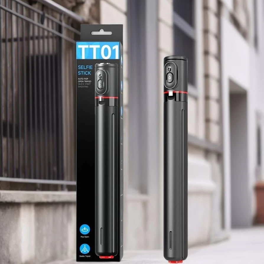 Le design multifonctionnel intègre une perche à selfie et un trépied, adapté pour les selfies, les photos de groupe, le Vlog et . Hauteur réglable jusqu'à 1,77 m pour répondre à différents besoins. La tige en alliage d'aluminium assure la robustesse et la construction permet de prendre des photos à distance. Trépied automatique pour une installation rapide et facile au sol.